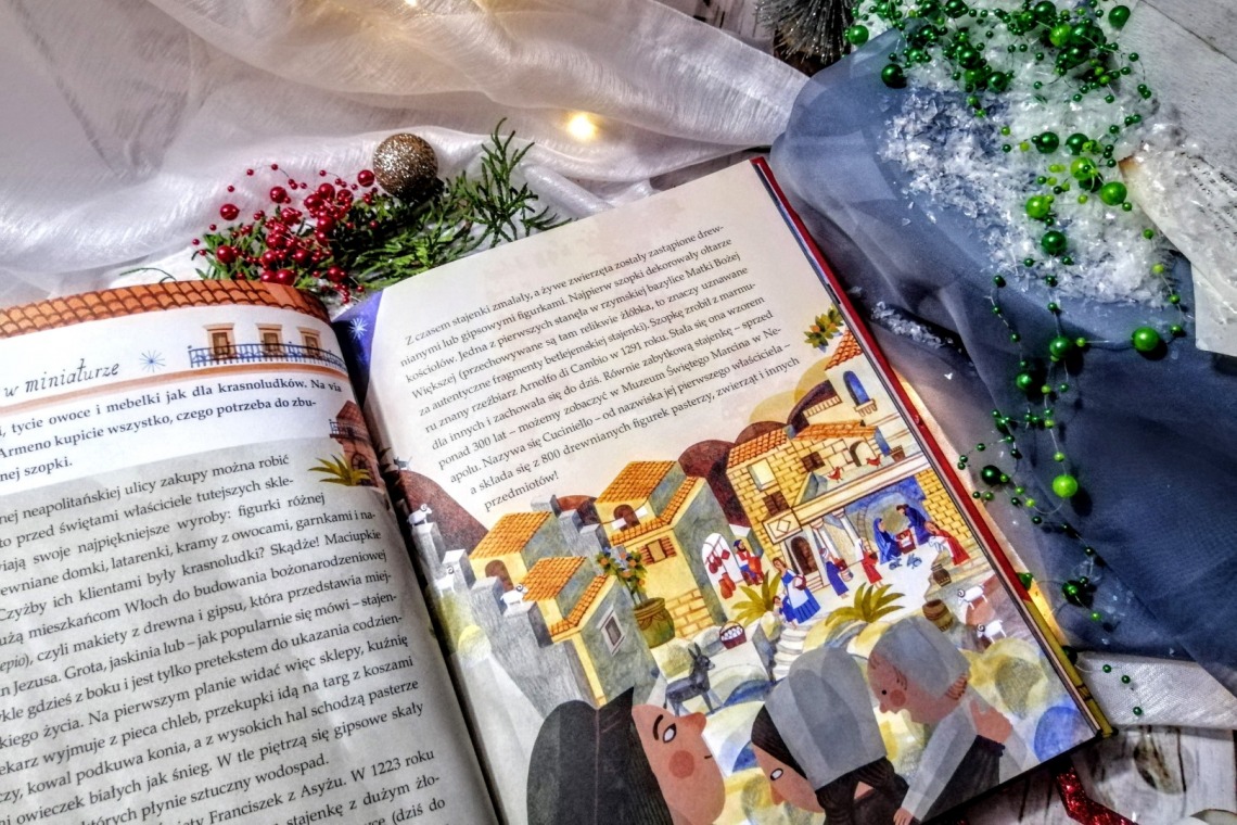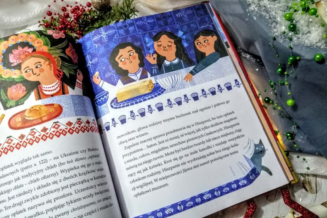 Oczywiście możemy szukać informacji w internecie, działając trochę po omacku. Znam jednak łatwiejszy sposób na to, by poszerzyć wiedzę swoją i moich dzieci. Z pomocą przychodzi nam przepięknie zilustrowana książka Idą święta, która zawiera szereg ciekawostek o świętach, tradycjach bożonarodzeniowych i postaci odpowiedzialnej za dostarczanie prezentów w ten magiczny czas.
