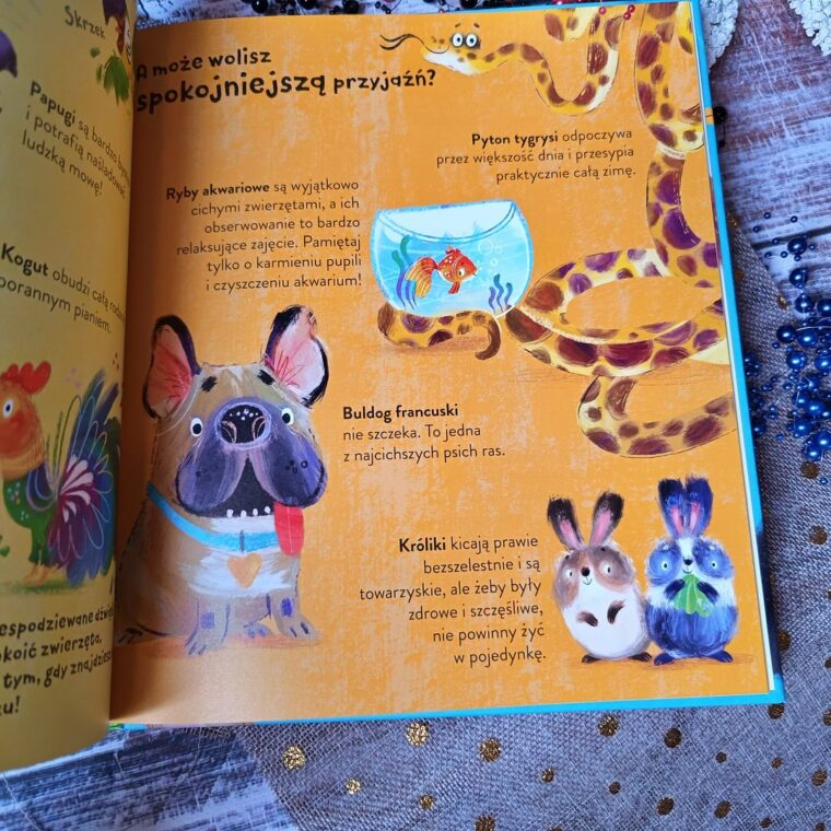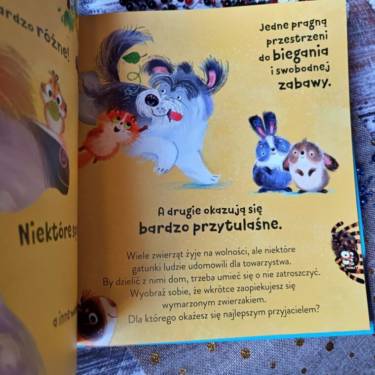 Lucy Beech w niewielkiej ilości tekstu zawarła całą masę faktów. Teraz z łatwością przebrniemy zarówno przez sam wybór, jak i dostosujemy nowego pupila do temperamentu i stylu życia całej rodziny. Ktoś ma alergię na sierść? To żaden problem, gdyż i na tę przypadłość znajdzie się rozwiązanie. Treść i forma dostosowane są do przedszkolaków, a zabawne ilustracje robią robotę. To lekkość i dawka humoru, których nie da się przeoczyć i zapomnieć. Jest zabawnie, ale i poważnie, bo przecież chodzi tu o podjęcie odpowiedzialnej decyzji. Z pewnością łatwiej będzie, gdy poznamy potrzeby różnych gatunków.
