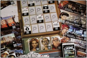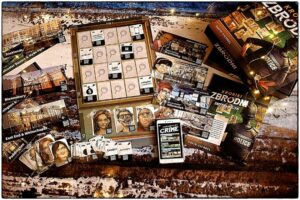 W skład gry wchodzi plansza, która pomoże nam ułożyć i wyeksponować poszlaki, dowody i podejrzanych. Karty lokacji podobnie jak te z postaciami i dotyczące przedmiotów mają QR kod, który łączy plansze z aplikacją i pozwala na wejście do rozgrywki. Dzięki takiemu zabiegowi uczestniczymy w rozpoznaniu terenu zbrodni, przesłuchujemy świadków i szukamy śladów, które doprowadzą nas wprost do rozwiązania.