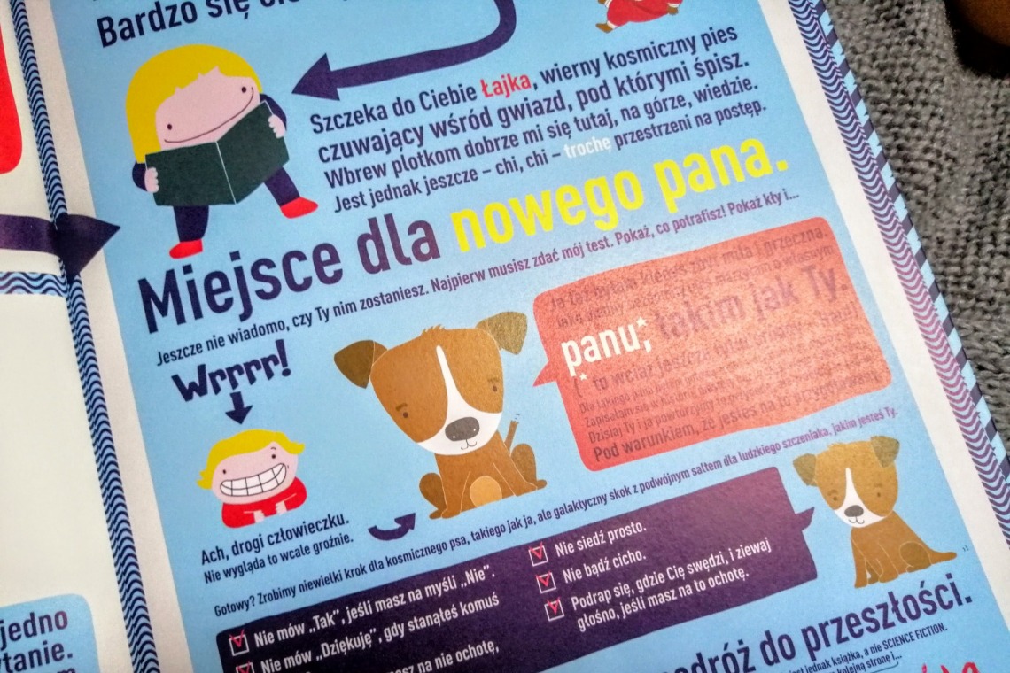 Masa ciekawostek i pięknie poprowadzona kreska sprawią, że wyprawa w kosmos w towarzystwie Łajki okaże się świetną zabawą. Twarda oprawa i piękne wydanie to dwa niezaprzeczalne plusy tej publikacji, a humor skryty w środku nakłoni każdego malucha do zaprzyjaźnienia się z Łajką i stania się jej właścicielem. Nietypowa lekcja o kosmosie i jego tajemnicach skradła nasze serca. Teraz wasza kolej.