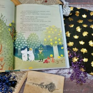 Obok takich publikacji nie należy przechodzić obojętnie. Dostajemy tu bowiem publikację estetyczną i zaskakująco prostą, co nie zabiera jej głębi, która skrywa się za przygodami. Opowieści z Doliny Muminków to podzielona na pięć rozdziałów książka, która dzięki sporej wielkości tekstu może być czytana wspólnie z pociechami, jak i stać się samodzielną lekturą dla sprawniejszych szkolniaków. Piękna okładka, która zdradza odrobinę magii skrytej w środku, Trwałe wydanie, które ozdobi nie jedną półkę, ma również miejsce, w którym możemy wpisać, kto jest właścicielem tej pięknie rozwijającej się kolekcji. Niby niewiele, ale każdy książkoholik będzie zachwycony. Kolejne pokolenie będzie zachwycało się tą historią, a wspólnie spędzony czas jest bezcenny. Dla takich książek warto zrobić miejsce na regale.