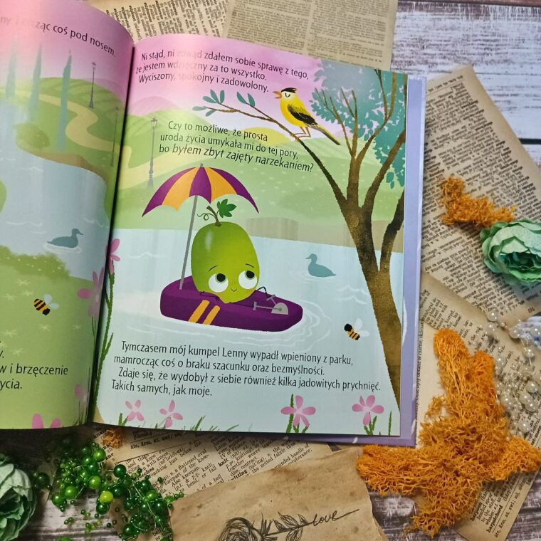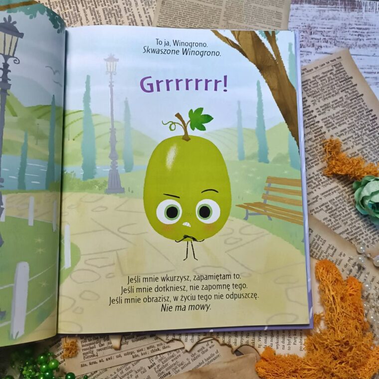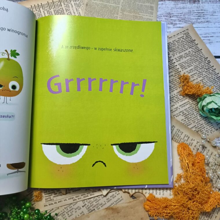 Skwaszone winogrono różni się nieco od poprzednich książeczek z serii. Emocje stają się poważniejsze, potrafią mocniej wpłynąć na bohatera książki i nie dotykać tylko jego, ale i jego otoczenia. Mali czytelnicy bez problemu wczują się w historię skwaszonego winogrona, które zbyt długo dusiło w sobie to, co złe. Ta opowieść udowodni im, że z każdym problemem poradzą sobie bez trudu, jeśli tylko pozwolą sobie na błędy i dadzą do tego przestrzeń innym. Jeśli wchodzicie w świat emocji i nie wiecie jak zacząć rozmowy z waszym małym i jakże wrażliwym odkrywcą, to ta seria sprawdzi się świetnie.