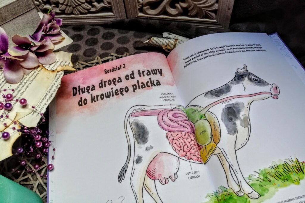 Podobnie do swojego poprzednika, również ten tom kradnie serce szatą graficzną. Jesteśmy pod wrażeniem kolorystyki, jakości ilustracji i oczywiście humoru, z jakim zostały stworzone. Jednak to mnogość ciekawostek wygrywa w starciu z chłonnym umysłem. Przed lekturą drugiego tomu serii myślałam, że mam sporą wiedzę na temat tych zwierząt. Jakże wielkie okazało się moje zdziwienie, gdy nie wiedziałam dużo więcej niż ilość żołądków, jakimi może poszczycić się krowa.