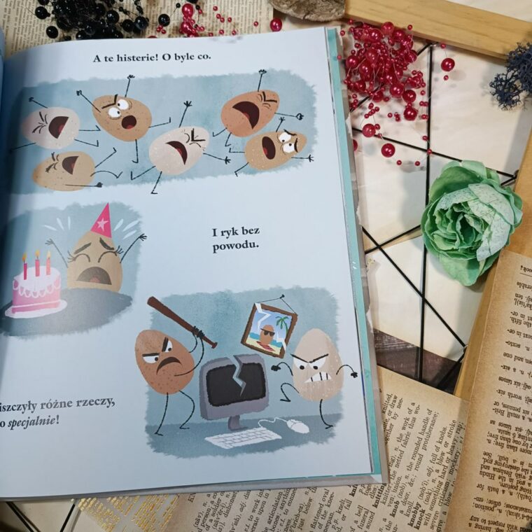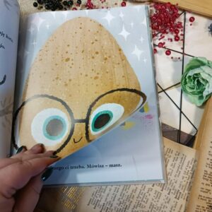 To kolejna opowieść z nowej serii od Harper Kids, która zachwyciła nas bezsprzecznie swoją prostotą i głębią. Mela, Pola, Tolo, Bolo, Jacek, Jaca, Jacenty, Jacula, Glut i Franek, i drugi Franek to jedenaścioro jajek, które nie są idealne i wzorowe. Wraz z nimi na sklepowej półce mieszka Wzorowe Jajo. Dba o każdego, śpieszy z pomocą i jest niezwykle uczynny. Ma co robić z pozostałą gromadką jajek. Do czasu, pewnego dnia zauważa, że jego skorupka zaczyna pękać, a ono samo czuje się coraz bardziej przytłoczone wszystkim, co do tej pory robiło. Zagubione w chęci pomagania innym, doskonalenia cudzej przestrzeni męczyło się i traciło wzorowość. Czy w końcu pomyślało o sobie?