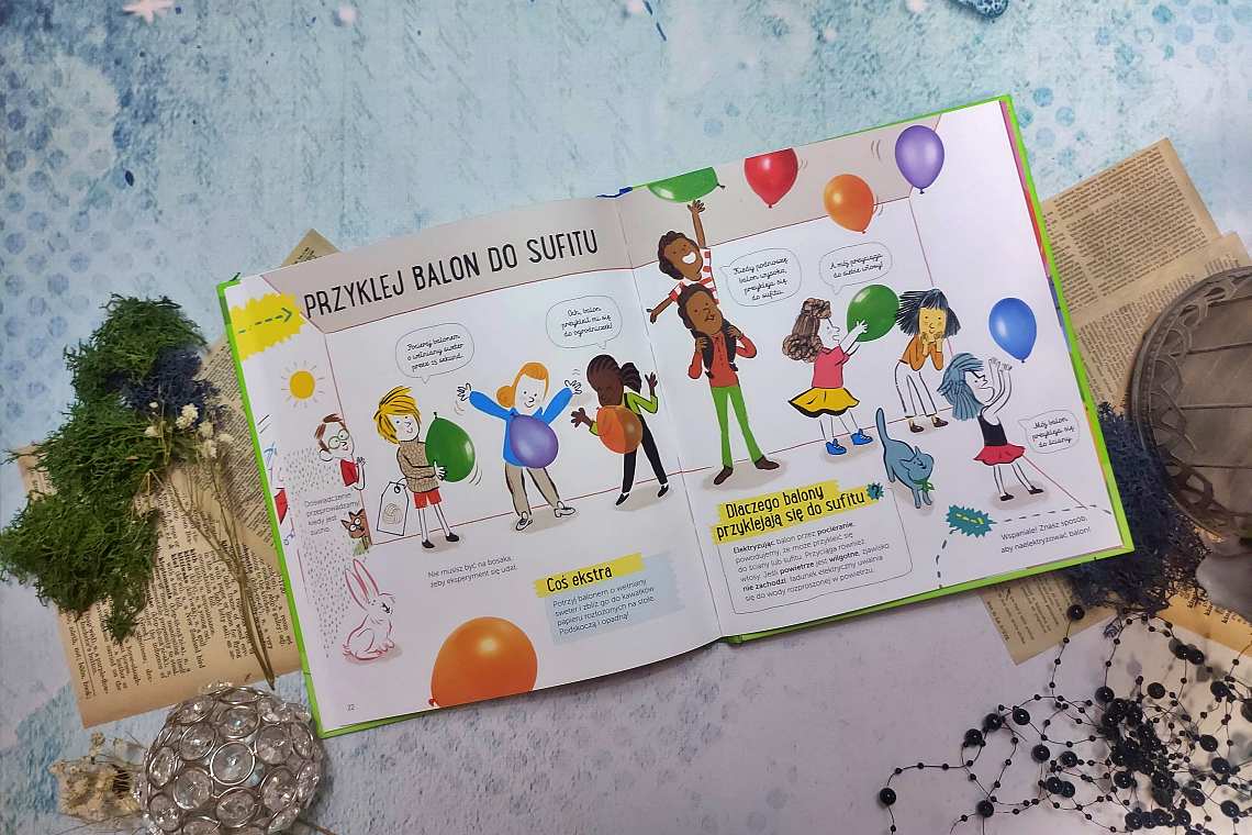 Z każdą kolejną częścią serii moje dzieci z zachwytem podchodzą do wiedzy zawartej w poszczególnych książeczkach. Lektura balonu okazała się długim i pełnym radości procesem. Teraz każdego dnia puszczamy balony i sprawdzamy, czy aby na pewno przyklejają się w różne miejsca. Choć maluchy już wiedzą, że to elektrostatyka, to ja wciąż cieszę się tą krztyną magii zawartą w ich radości, gdy balon przyczepia się do sufitu.