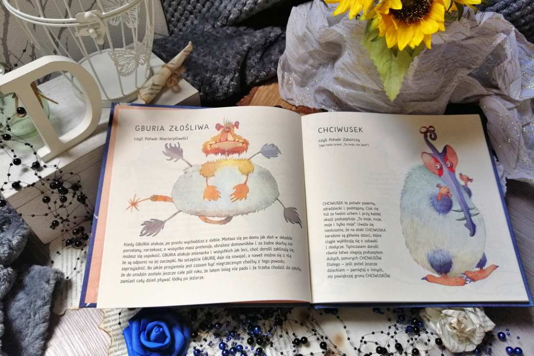 Mała encyklopedia Domowych Potworów to przede wszystkim ogromna dawka humoru i ironii przedstawionych w ujmujący sposób. Bez problemu damy się porwać wirowi przygody i zyskamy oręż w walce z codziennymi potworkami, próbującymi sterować naszym życiem. To świetny sposób na pokonanie słabości naszych pociech i pamiętanie, że i nam potworki mogą dać się we znaki. Całość utrzymana jest w encyklopedycznym porządku, jednak nie jest ni krztynę nudną. No i te niesamowite grafiki, z których patrzą na nas te wszystkie mniej lub bardziej złośliwe potwory. Piękna kreska i niezwykła paleta barw połączone z humorem i dawką dystansu czynią te pozycje uniwersalnym przewodnikiem po wszystkich domowych stworach, które udało się dostrzec człowiekowi. Autor stworzył zbiór naszych wad i złych nawyków, którym musimy stawić czoło niemalże codziennie. To pomocne narzędzie, które w delikatny sposób ukaże dziecku, jak radzić sobie z emocjami, w szczególności tymi negatywnymi.
