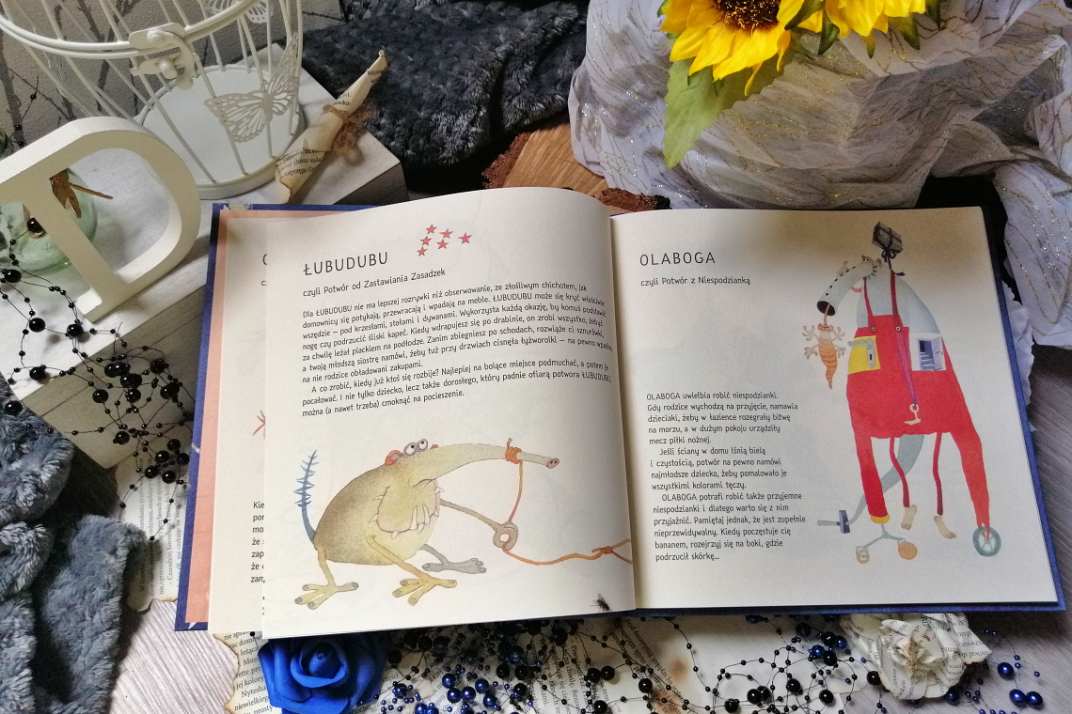 Są takie książki, które absolutnie każdy powinien mieć w swoim domu i cieszyć się lekturą z całą rodziną. Nie inaczej jest w przypadku omawianej dziś przeze mnie encyklopedii. Jej niezwykłe walory docenią czytelnicy w wielu grupach wiekowych, a radość ze wspólnego poznawania poszczególnych stworków udzieli się nam już po przeczytaniu pierwszej strony. Autor w niezwykle barwny, przyjemny i równie prosty sposób zaprasza nas do świata, który pozornie znamy. Tajemnicza podróż okaże się przygodą, której nie sposób zapomnieć. Zaskoczyła mnie lekkość pióra i charakterność postaci. Nie można dać zwieść się uśmiechom i zapewnieniom dobrej zabawy, to wciąż potworki, które chcą wprowadzić nas w błąd i śmiać się z nas, a nie z nami.