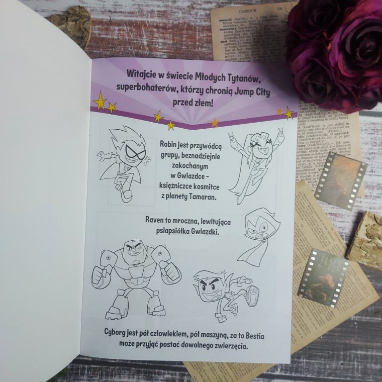 Brzydka pogoda, katar a może panosząca się po całym domu nuda. Któż z rodziców nie zna takich scenariuszy, gdy nasze pociechy kręcą nosem nawet na dawkę telewizji a wyjście na dwór nie jest możliwe. Wtedy też trzeba sięgnąć po wsparcie i dać brzdącom wspólnie spędzony czas z domieszką śmiechu, nauki i zabawy. Idealnie w tej dziedzinie sprawdzają się książeczki z serii Zabawy i zadania z naklejkami. Na rynku obecnie można znaleźć mnóstwo tytułów w takiej formie, które dedykowane są poszczególnym grupom wiekowym i odbiorcom konkretnych historii znanych z bajek i gier. Tym razem w nasze ręce wpadła książeczka z bohaterami bajki Młodzi Tytani Akcja! Co kryje w środku?