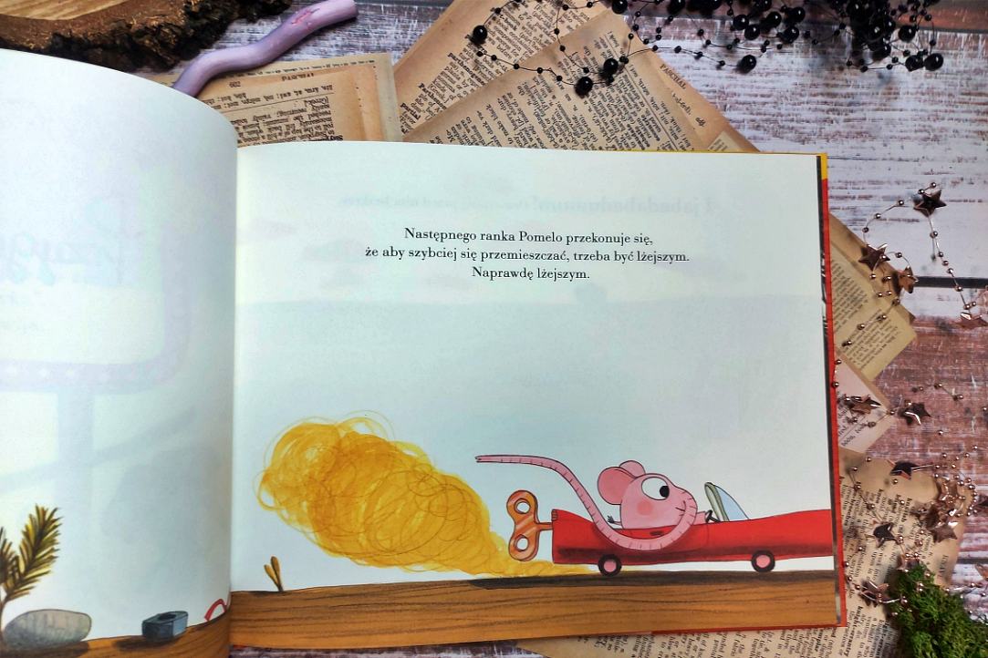 Pomelo i wielka przygoda to niesamowita książka, która trochę różni się op poprzednich przygód rezolutnego słonika z prze długą trąbą. Nie zmniejsza to poziomu radości i wartości, które się tu skrywają. Jego podróż to pokonywanie kolejnych etapów w życiu, uczenie się nowych rzeczy, poznawanie postaci, które wpływają na to, kim się staje i jak postrzega świat. Nie brakuje tu również miejsca na tęsknotę za rodzicami i pokonywania własnych lęków. Mała książka i słonik z dużą trąbą zmienią tak wiele, wystarczy tylko dać się ponieść przygodzie i nie zważać na to, co sami już wiemy.
