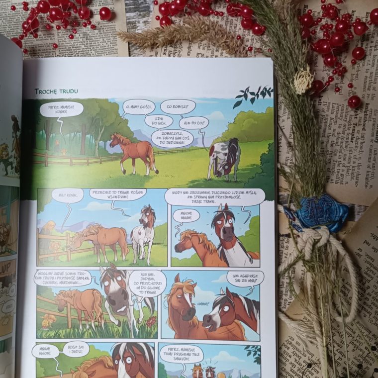 Koń by się uśmiał, to może i my postaramy się wyciągnąć z tego radość. Bo czemu by nie czerpać pełnymi garściami tej magicznej i zdrowej mieszanki łez i uśmiechu, które czekają na kartach kolejnego komiksu z masą humoru i niesamowitych postaci. Nie mogliśmy się oprzeć kresce, barwom i różnorodności bohaterów komiksu spod pióra Laurenta Dufreney. Tytuł, okładka i opis zasugerowały wejście do świata jeździeckiego, jednak nie spodziewałam się takiej dawki zabawy. Pierwszy tom wprowadził nas wprost do stajni i na wybieg pewnego klubu. W nim poznamy perspektywę nauki jazdy, okiem mieszkańców boksów, a nie jeźdźców, którzy staną się obiektem wielu żartów i niesamowitych przygód.